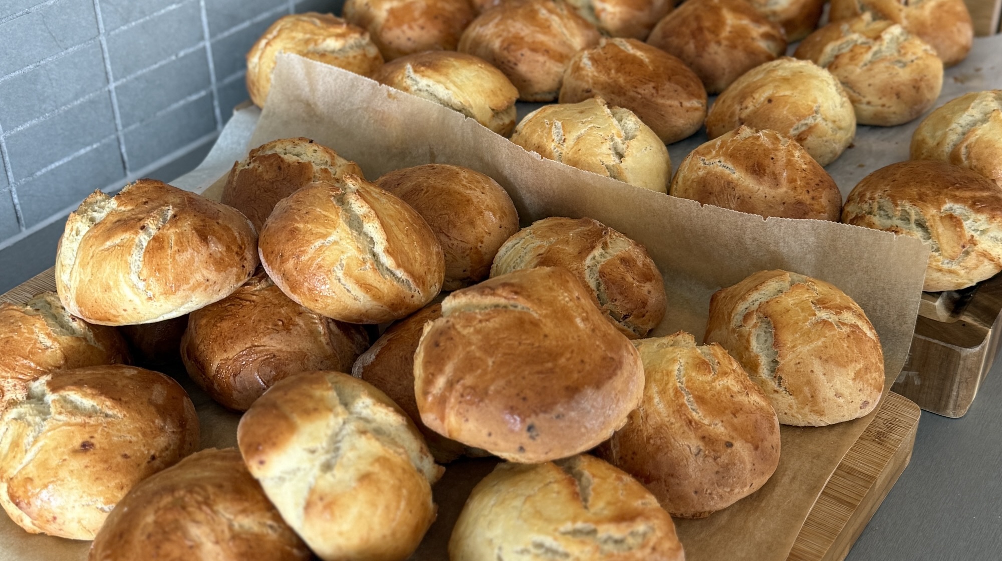 Hráefni  — Beyglur: Hægt er að gera beyglur úr sama deigi en þá nást 16 stk úr einni uppskrift. Hægt að setja 6 beyglur á eina bökunarplötu. Bakið jafn lengi og bollurnar.